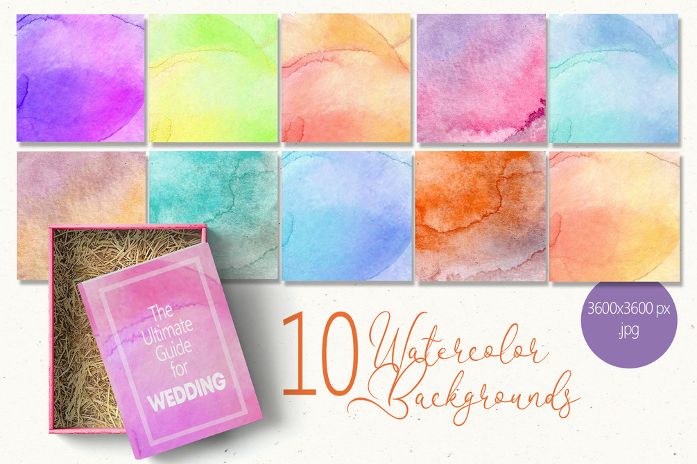 • 10 files of raster file of watercolor backgrounds (.jpg)